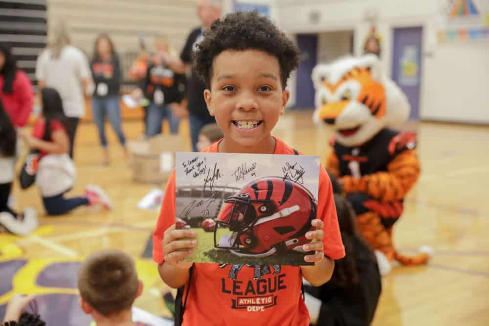 In May, the Bengals 2022 rookie class visited Whitaker Elementary School to hand out Kettering Health-donated flag football kits and lead the students through drills. In September, while John G. Carlisle Elementary fifth-grade students participated in skill and drill stations in their gym class, Bengals’ Mike Hilton and Ted Karras made a surprise visit to talk about football and provide them with their kits.