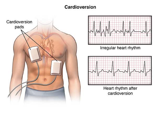 Before other treatment is started, you may first need a procedure called an electrical cardioversion. This can help get the heart back into a normal rhythm. Your provider uses special pads or paddles to send one or more brief electrical shocks to the heart. This is to stop the signal that is making the atria quiver and reset the heartbeat to normal. You may need a special echocardiogram called a transesophageal echocardiogram. This is to make sure you don’t have a clot in your heart that could cause a stroke if the cardioversion is successful.