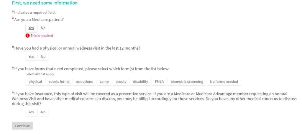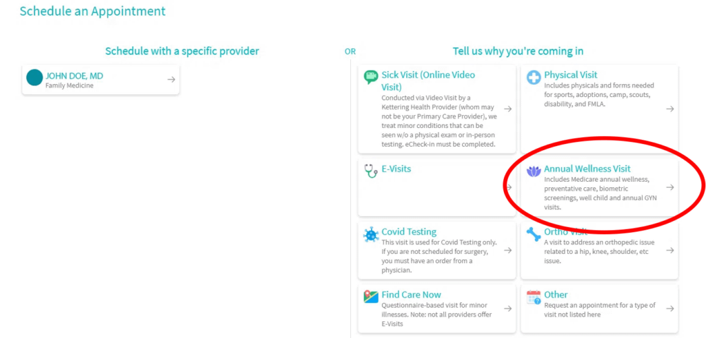 2. On the right-hand side of the screen, you’ll see options. Click “Annual Wellness Visit”