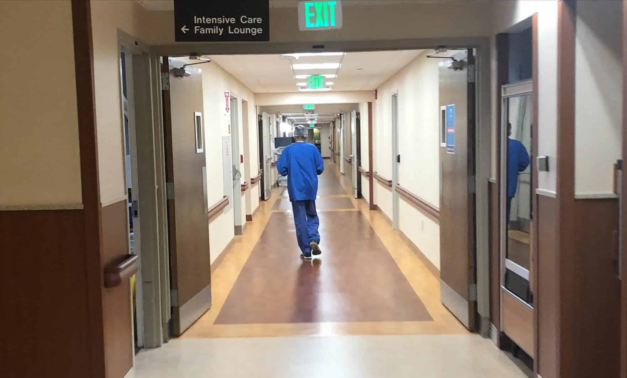 Wearing blue scrubs and neon green running shoes, Dr. Hemant Shah walks into the lounge. He’s just come from the fifth floor where he and a chaplain held a “care for the caregiver meeting” for worn-thin ICU nurses.